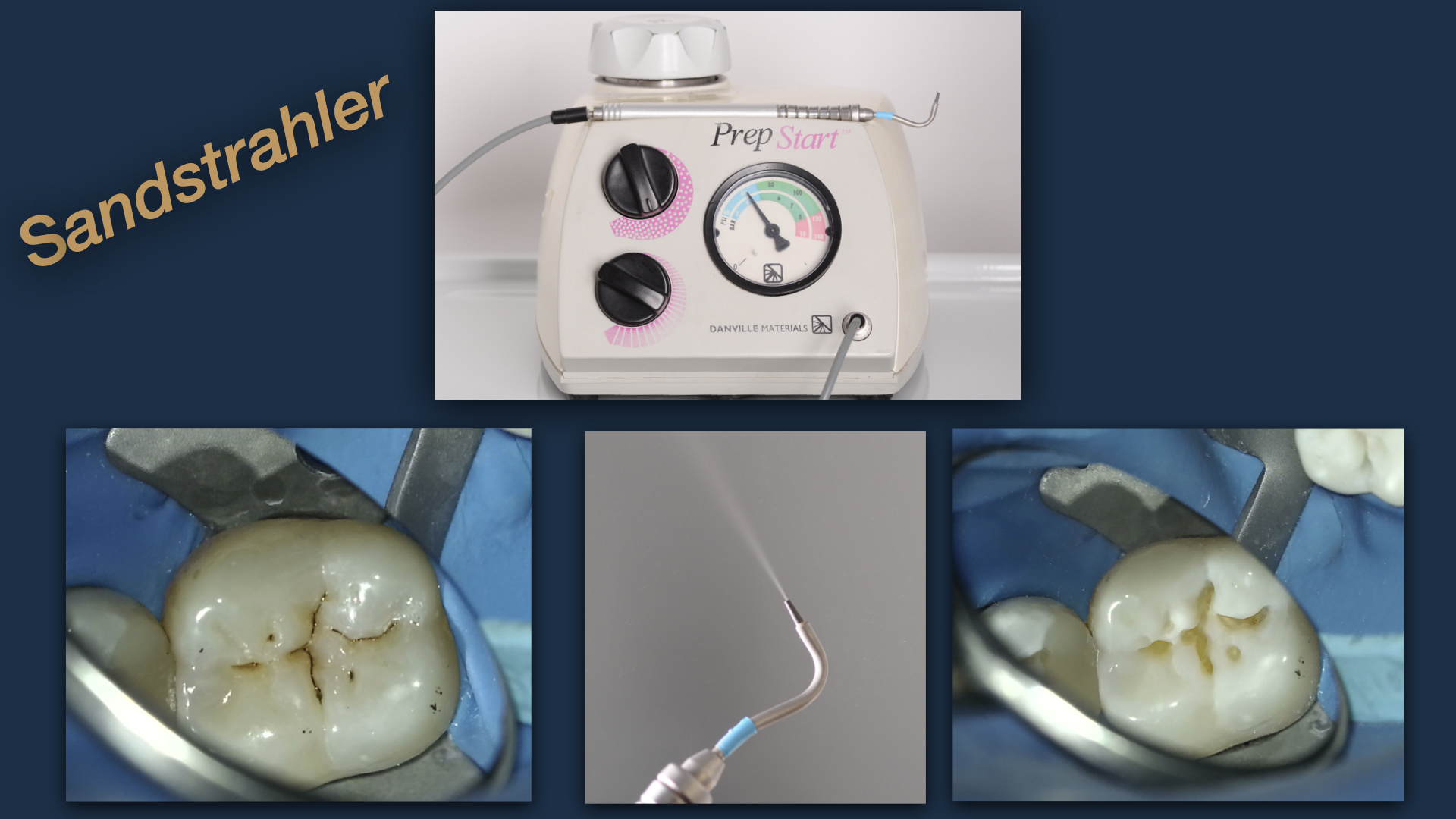 - Da der Sand wesentlich schmaler ist als der kleinste Bohrer, kann ich viel besser in die kleinen Gruben und Spalten hinein arbeiten als mit dem Bohrer und daher Karies genau entfernen