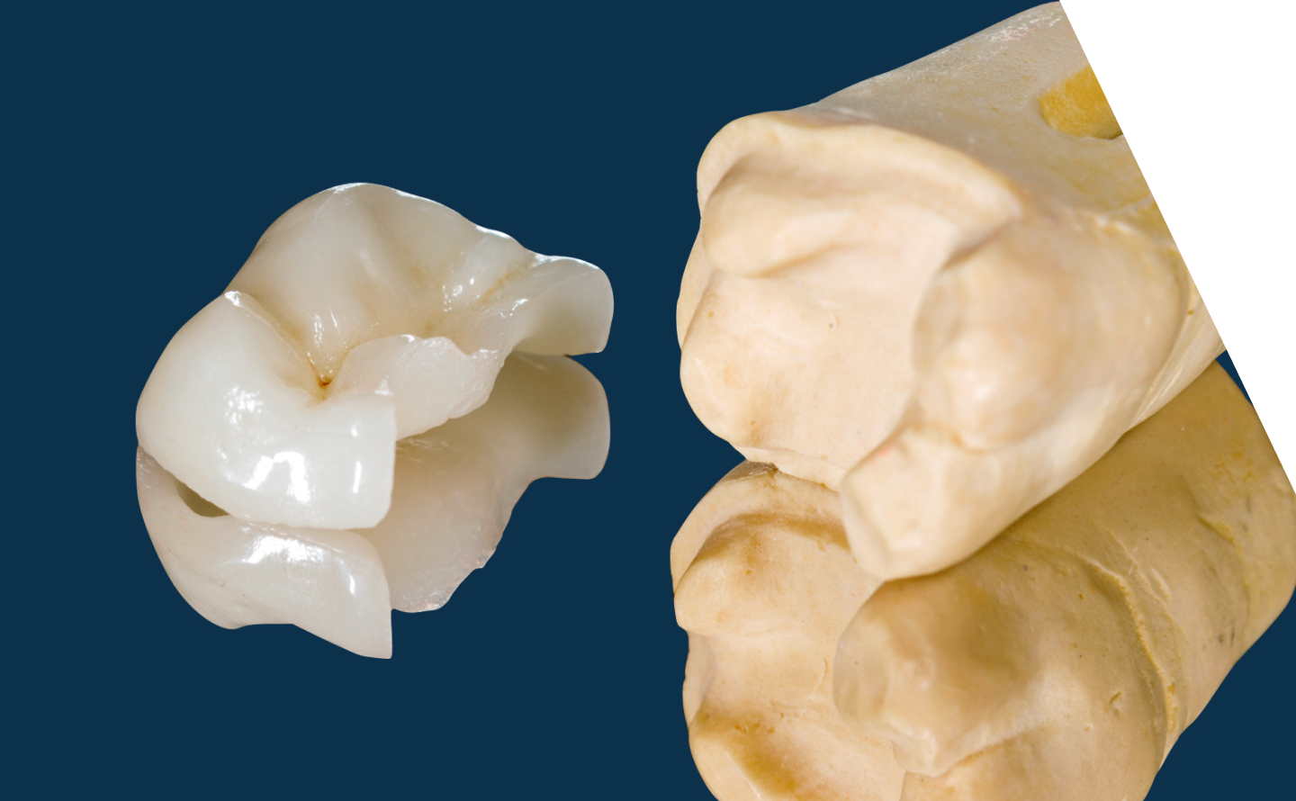 So haben Sie weder bei der Ästhetik noch bei dem Gebrauch Ihrer Zähne Einschränkungen zu erwarten. Der fehlende oder zu restaurierende Zahn wird mit Genauigkeit im Nanometerbereich als Zahnbrücke oder Zahnkrone nachgebildet.